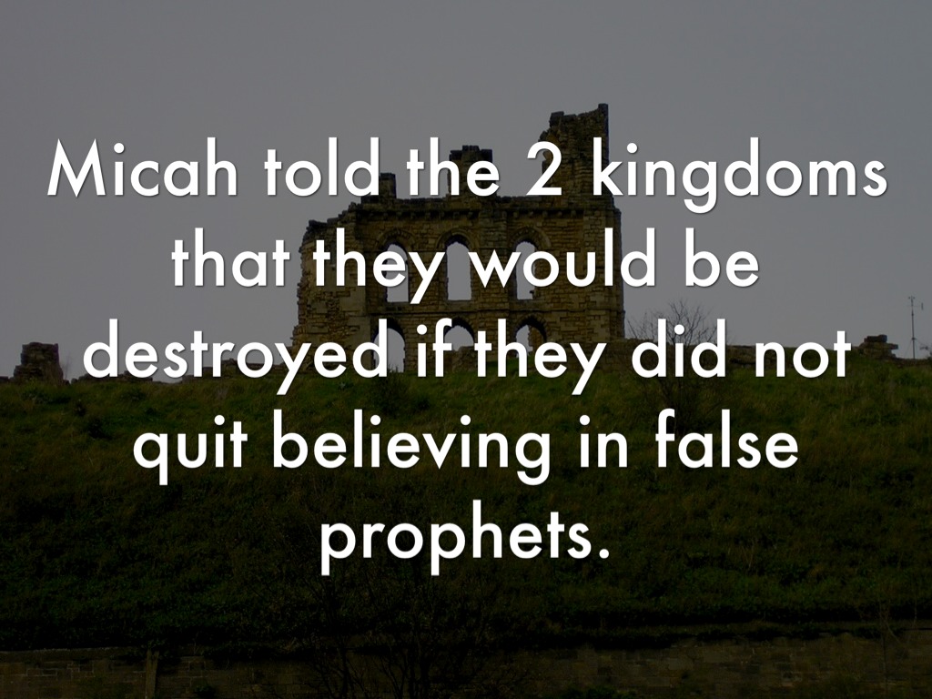 Micah told the 2 kingdoms that they would be destroyed if they did not quit believing in false prophets.