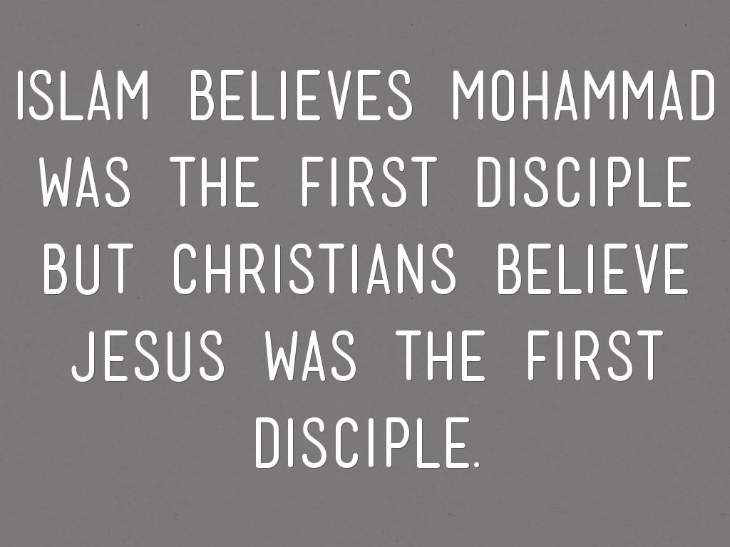 Islam believes Mohammad was the first disciple but Christians believe Jesus was the first disciple.