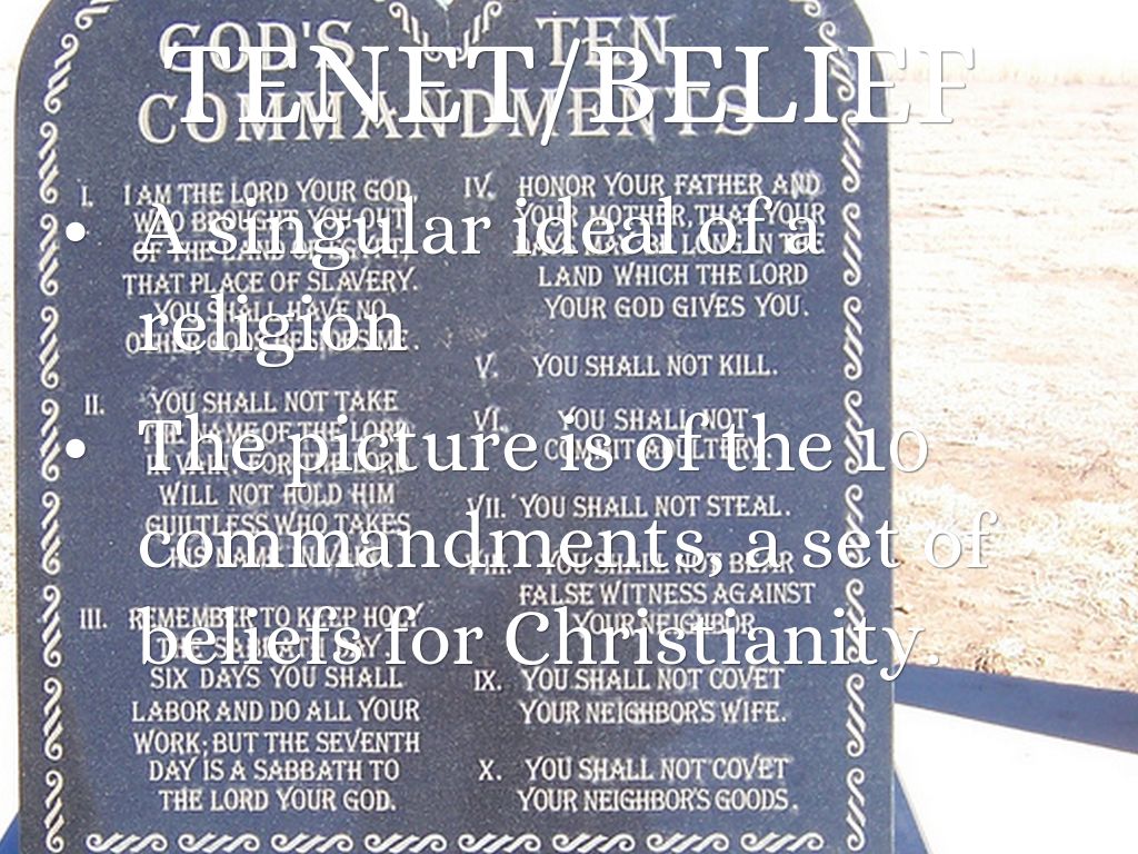 The picture is of the 10 commandments, a set of beliefs for Christianity.