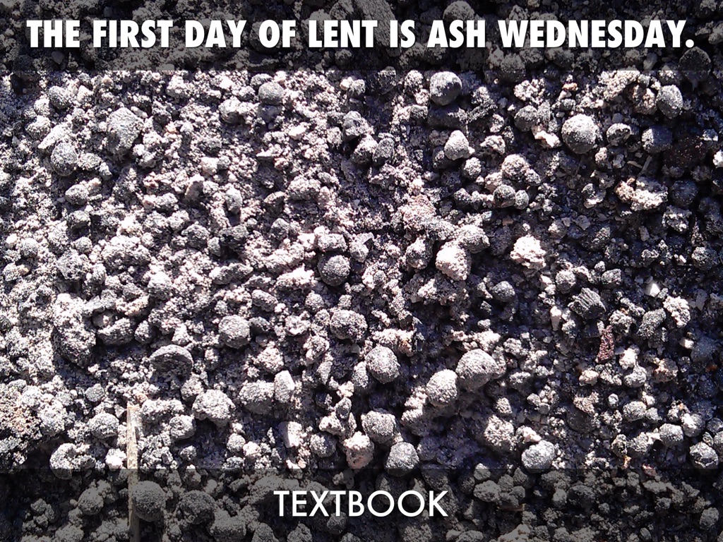 THE FIRST DAY OF LENT IS ASH WEDNESDAY.