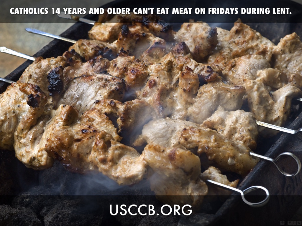 CATHOLICS 14 YEARS AND OLDER CAN'T EAT MEAT ON FRIDAYS DURING LENT.
