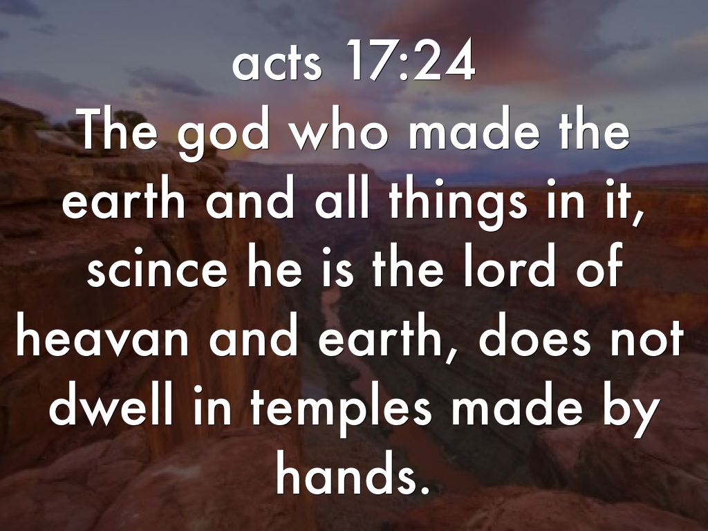 The god who made the earth and all things in it, scince he is the lord of heavan and earth, does not dwell in temples made by hands.