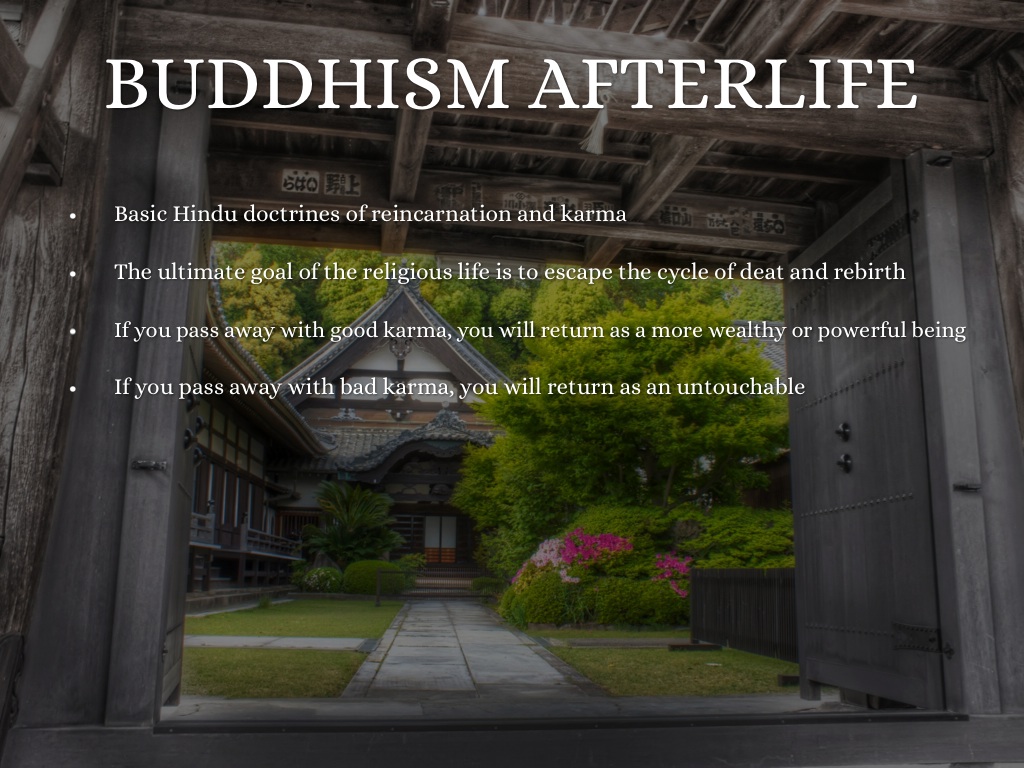 If you pass away with good karma, you will return as a more wealthy or powerful being