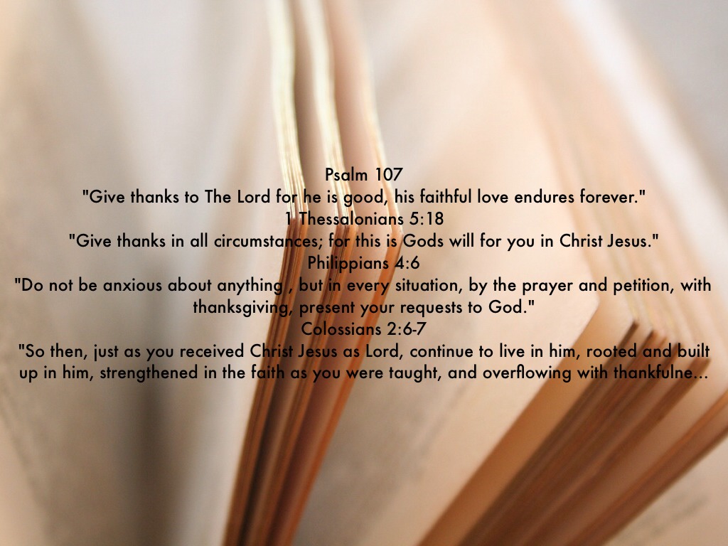 "Give thanks in all circumstances; for this is Gods will for you in Christ Jesus."