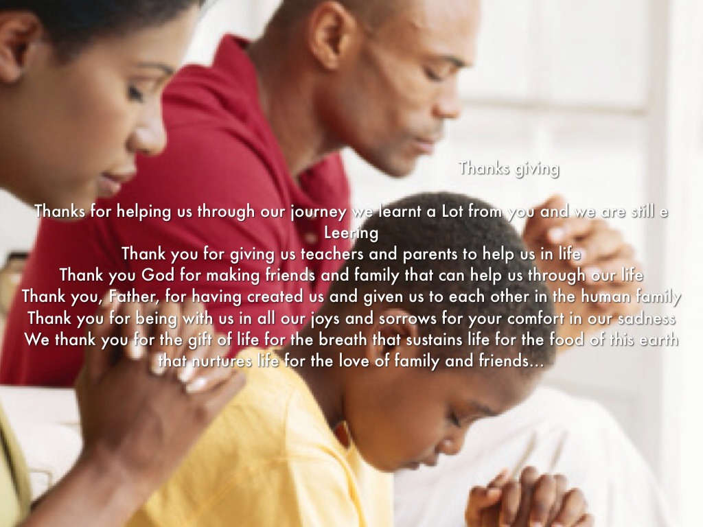 Thank you, Father, for having created us and given us to each other in the human family Thank you for being with us in all our joys and sorrows for your comfort in our sadness