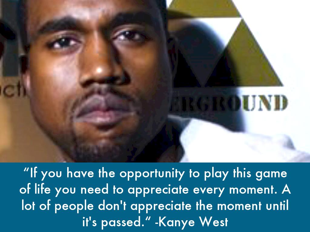 “If you have the opportunity to play this game of life you need to appreciate every moment. A lot of people don't appreciate the moment until it's passed.“ -Kanye West
