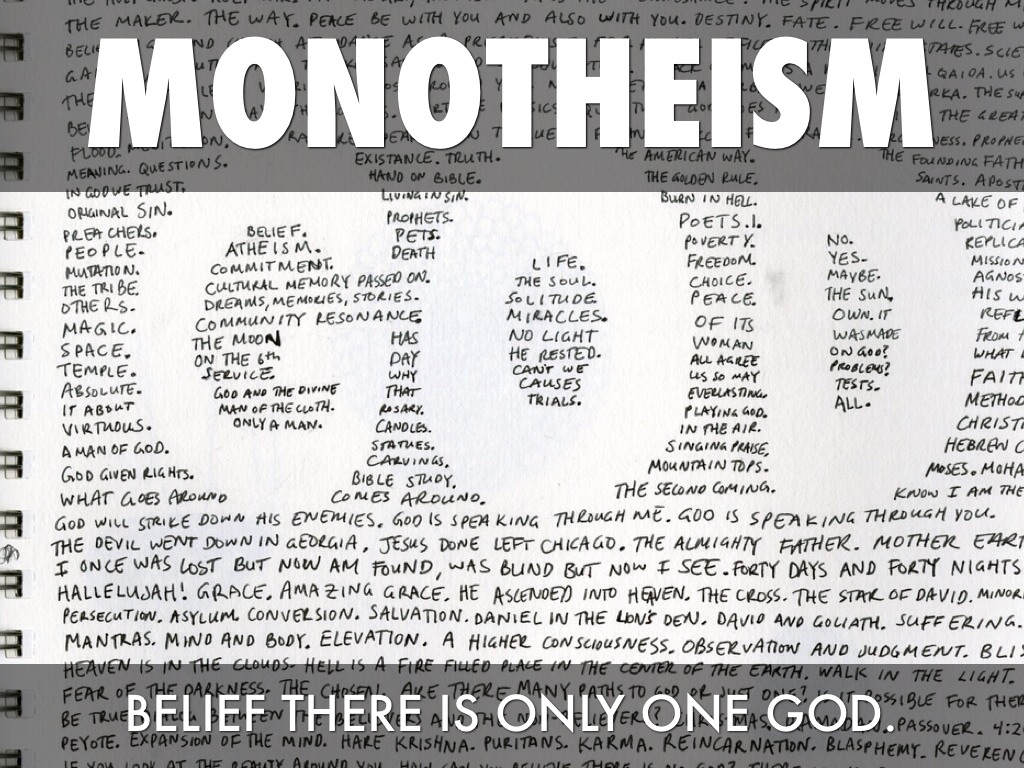 This picture represents the word God once, showing that it is important compared to the smaller words.