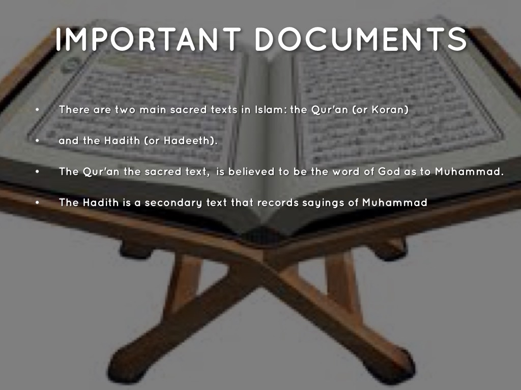 There are two main sacred texts in Islam: the Qur'an (or Koran)