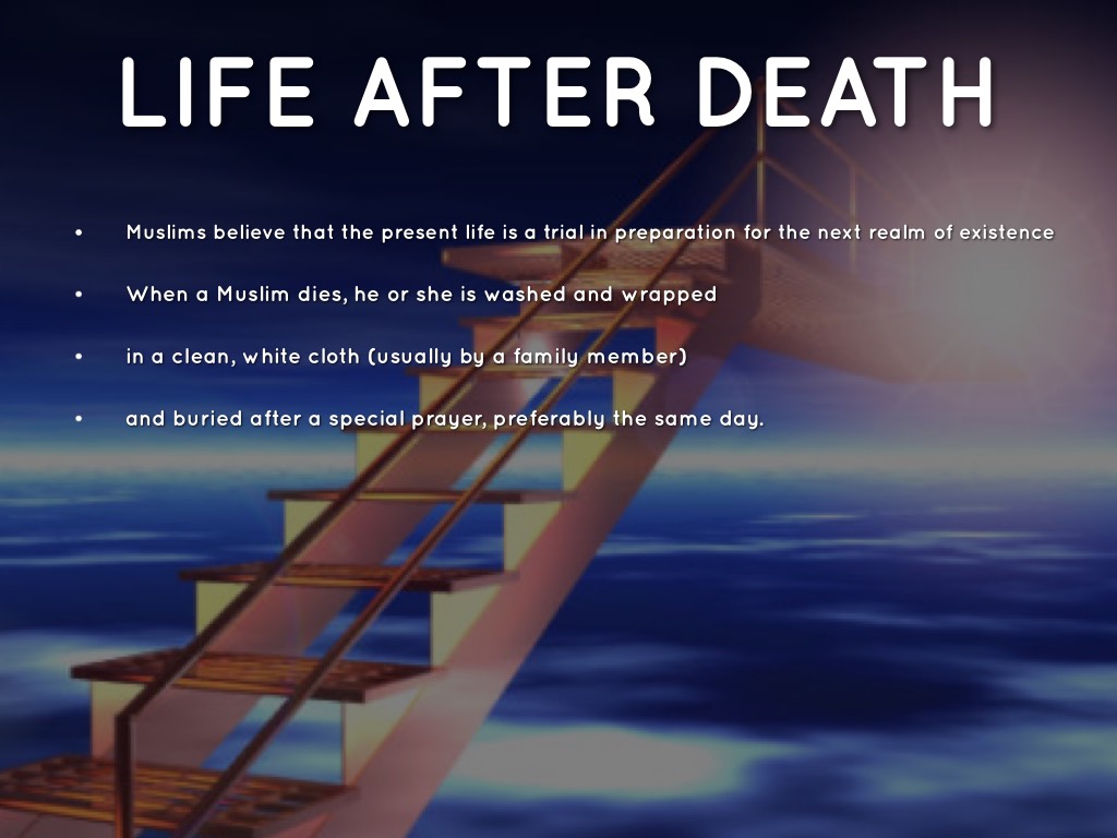 Muslims believe that the present life is a trial in preparation for the next realm of existence