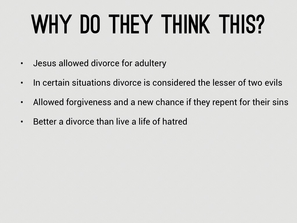 Most think divorce is wrong but it is allowed if the marriage has broken down