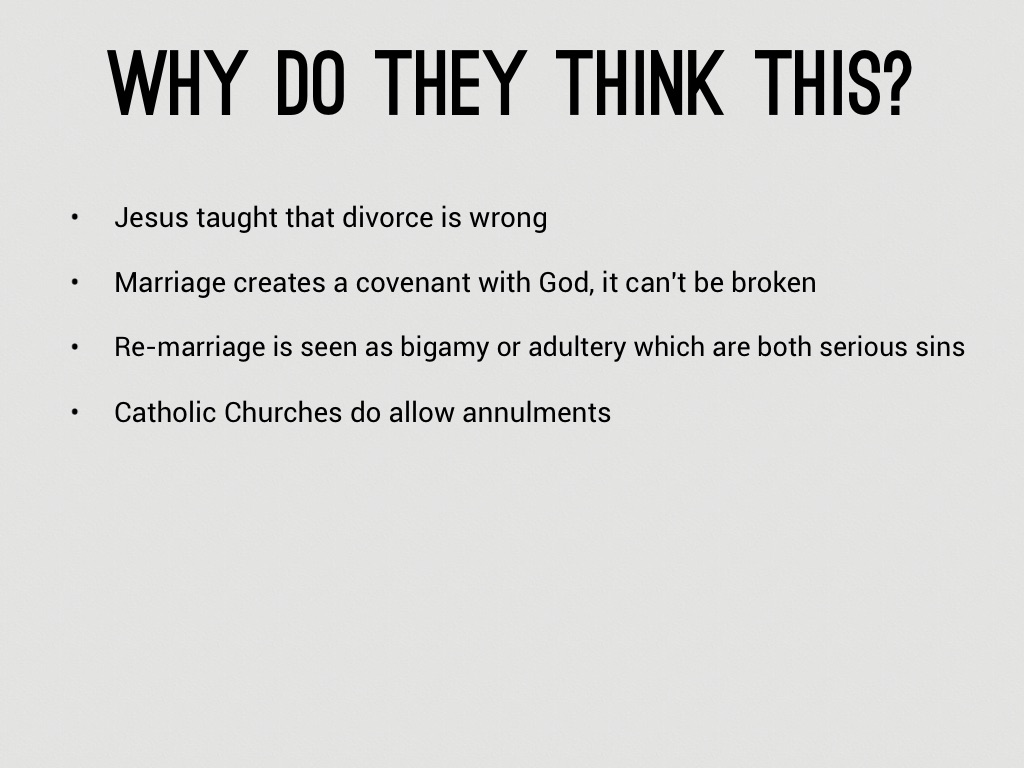 Re-marriage is seen as bigamy or adultery which are both serious sins