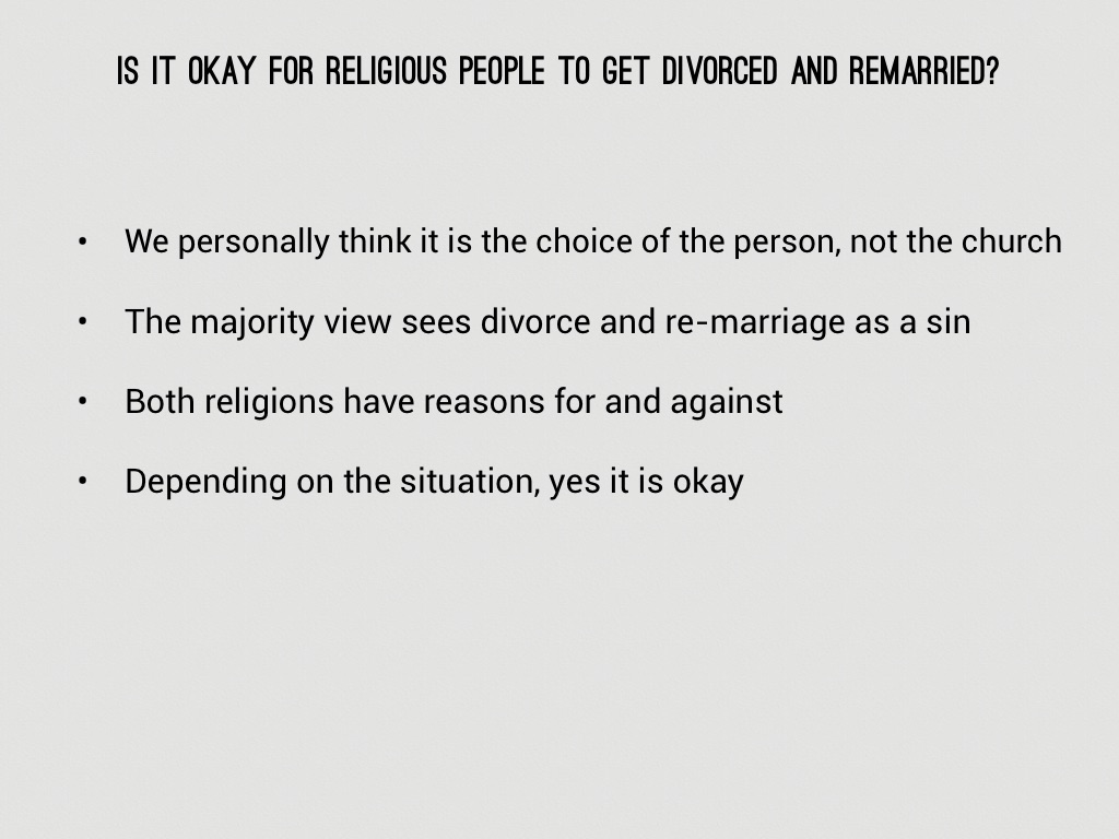 IS IT OKAY FOR RELIGIOUS PEOPLE TO GET DIVORCED AND REMARRIED?