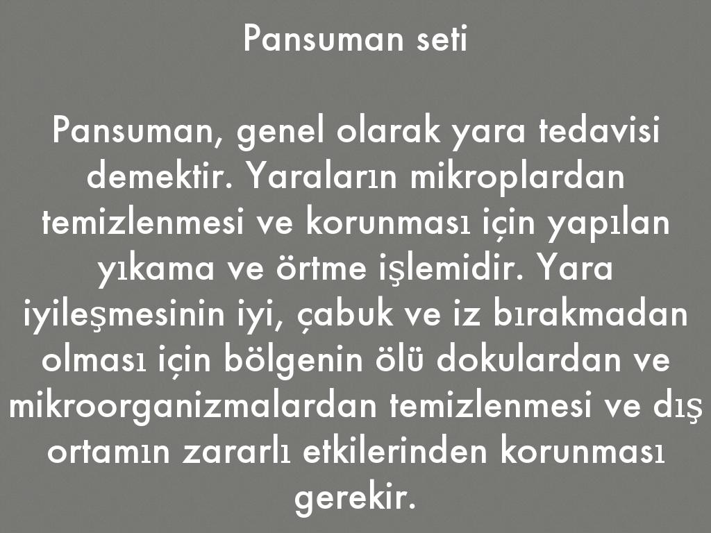 Pansuman, genel olarak yara tedavisi demektir. Yaraların mikroplardan temizlenmesi ve korunması için yapılan yıkama ve örtme işlemidir. Yara iyileşmesinin iyi, çabuk ve iz bırakmadan olması için bölgenin ölü dokulardan ve mikroorganizmalardan temizlenmesi ve dış ortamın zararlı etkilerinden korunması gerekir.