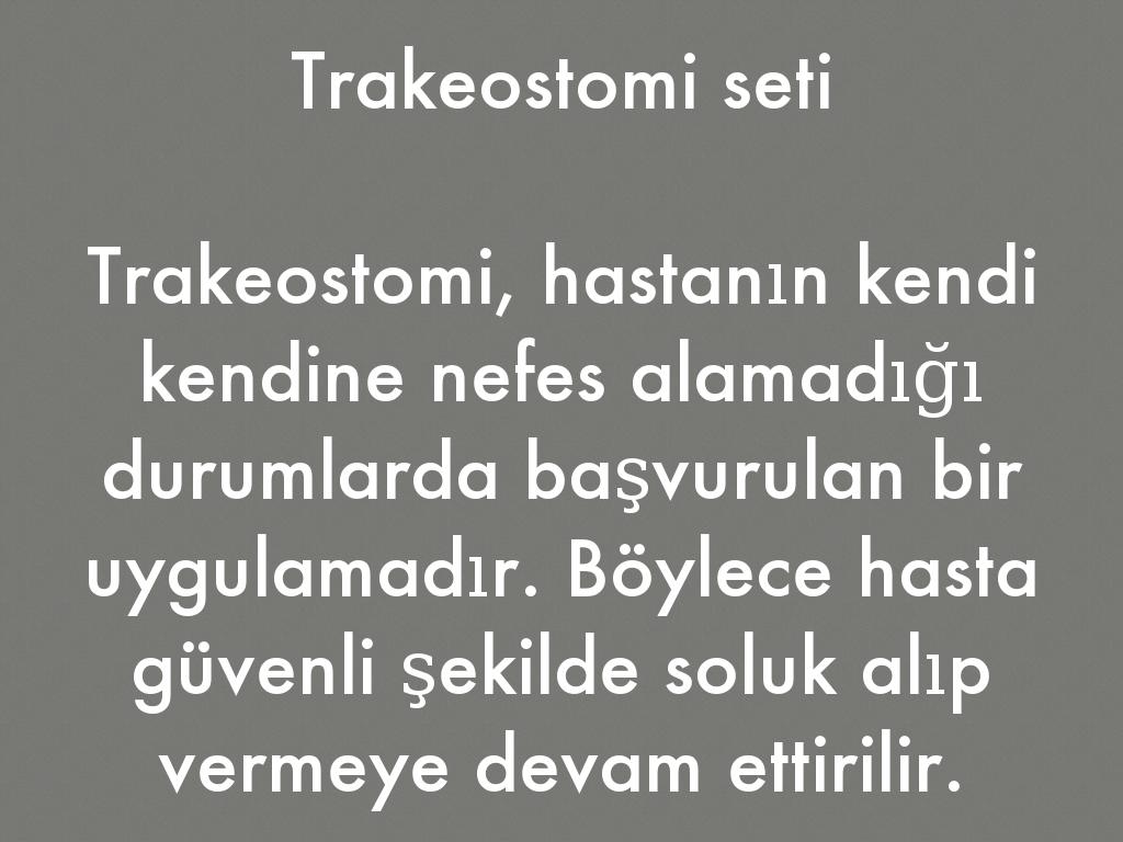 Trakeostomi, hastanın kendi kendine nefes alamadığı durumlarda başvurulan bir uygulamadır. Böylece hasta güvenli şekilde soluk alıp vermeye devam ettirilir.
