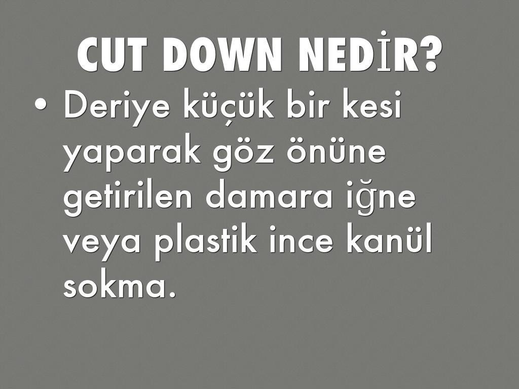 - Deriye küçük bir kesi yaparak göz önüne getirilen damara iğne veya plastik ince kanül sokma.