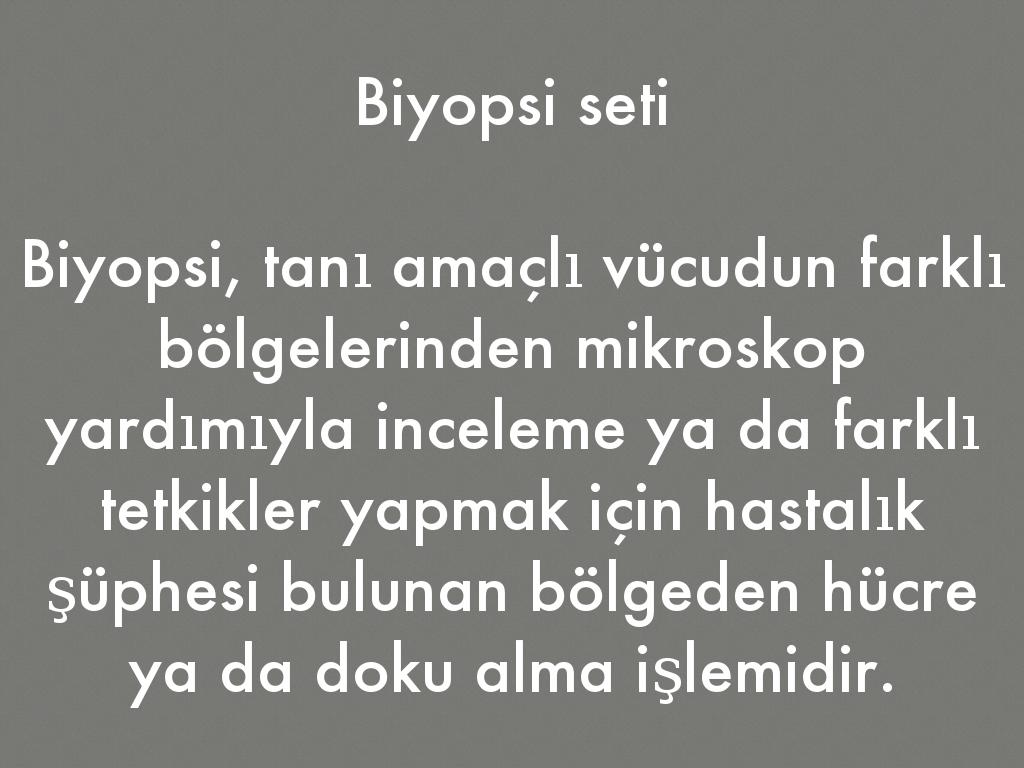 Biyopsi, tanı amaçlı vücudun farklı bölgelerinden mikroskop yardımıyla inceleme ya da farklı tetkikler yapmak için hastalık şüphesi bulunan bölgeden hücre ya da doku alma işlemidir.
