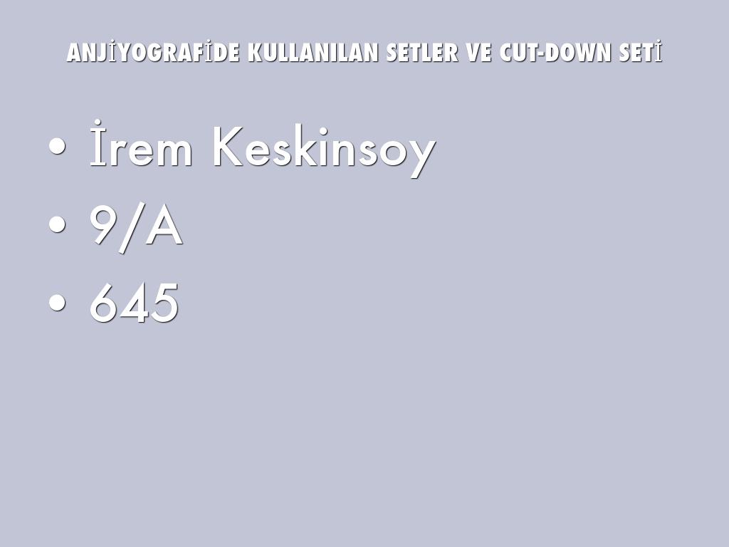 ANJİYOGRAFİDE KULLANILAN SETLER VE CUT-DOWN SETİ