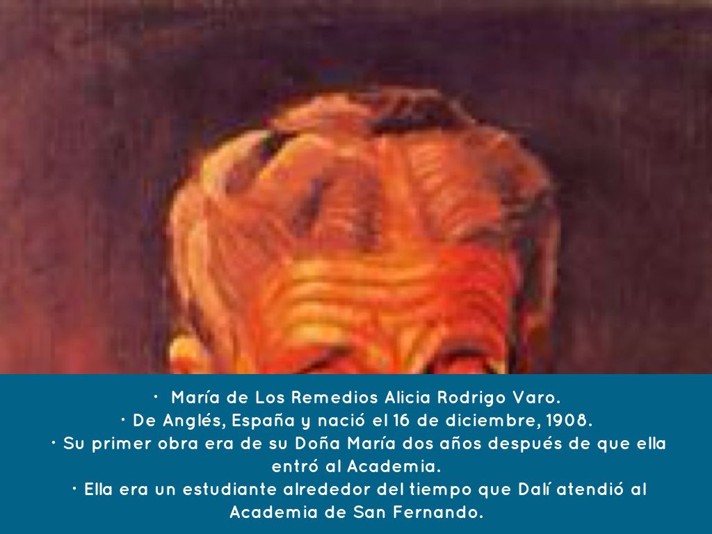 ・ María de Los Remedios Alicia Rodrigo Varo. ・De Anglés, España y nació el 16 de diciembre, 1908. ・Su primer obra era de su Doña María dos años después de que ella entró al Academia. ・Ella era un estudiante alrededor del tiempo que Dalí atendió al Academia de San Fernando.