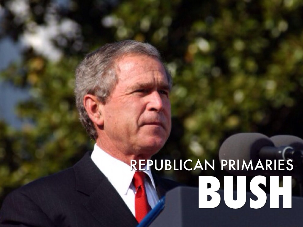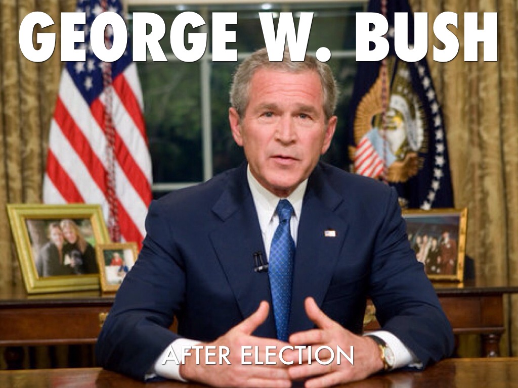 Bush: George W. Bush was born in New Haven, Connectiit, to George Herbert Walker Bush and Barbara Pierce. They moved to Midland, Texas where George W attended school until 7th grade. After that moved to Houston, Texas. Attended prep school in Houston for 2 years. Then attended Phillips academy, all male boarding school. Went to Yale Univ. and graduated with a B.A. in history. Bush served in the Texas Air National Guard for several years. Later became governor of Texas for 2 consecutive 4 year tems(first in the history of Texas)