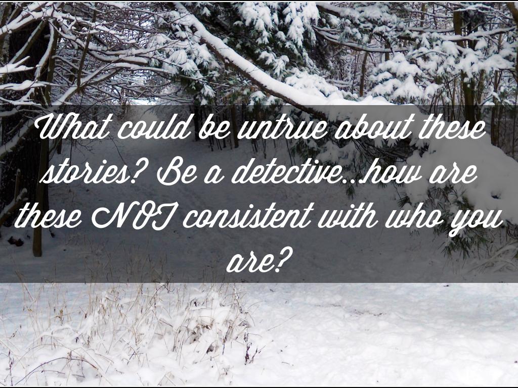 What could be untrue about these stories? Be a detective...how are these NOT consistent with who you are?