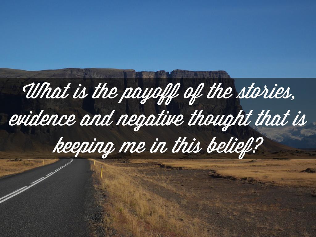 What is the payoff of the stories, evidence and negative thought that is keeping me in this belief?