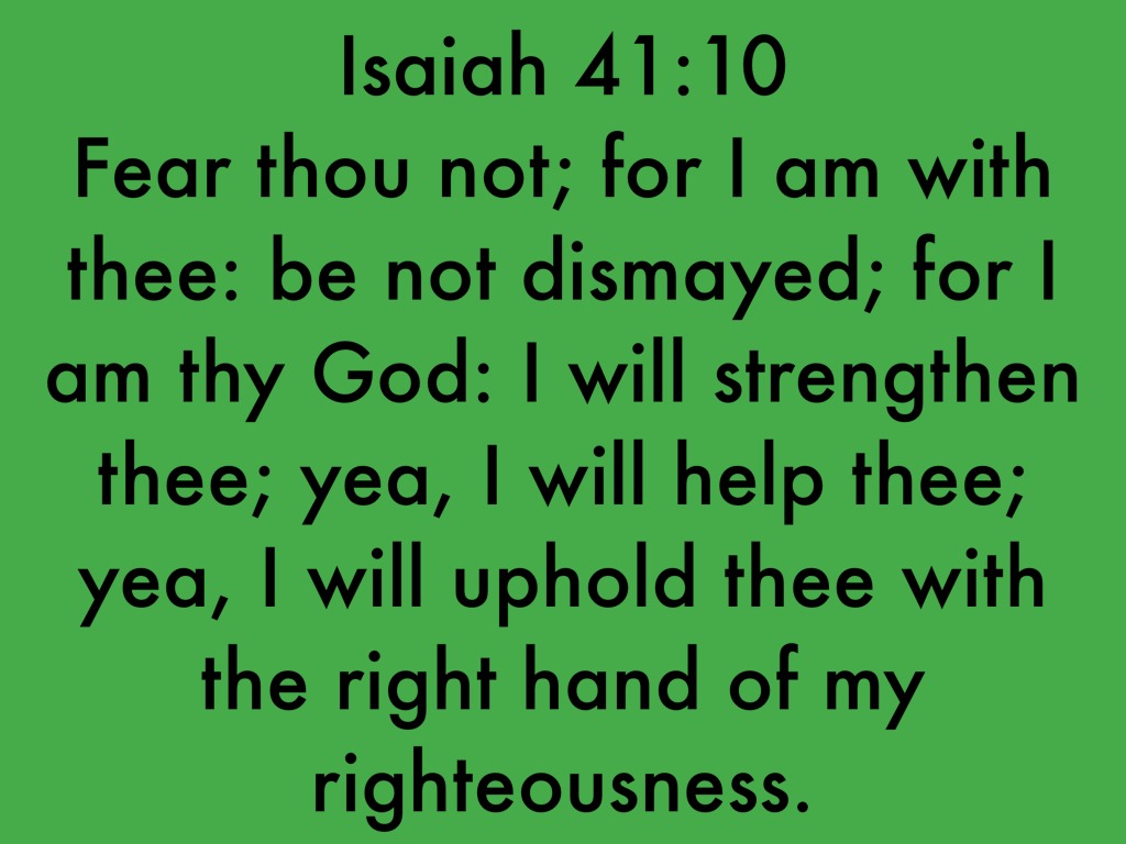 Fear thou not; for I am with thee: be not dismayed; for I am thy God: I will strengthen thee; yea, I will help thee; yea, I will uphold thee with the right hand of my righteousness.