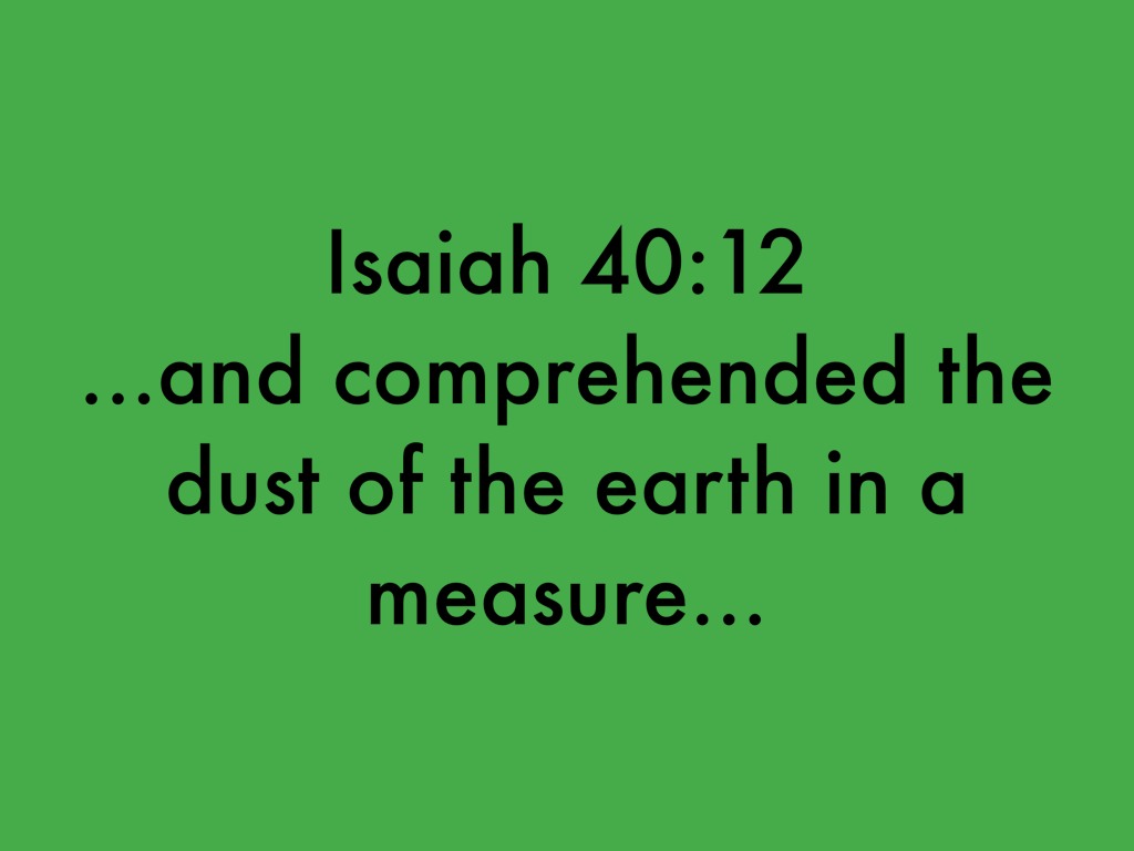 ...and comprehended the dust of the earth in a measure, and weighed the mountains in scales, and the hills in a balance?