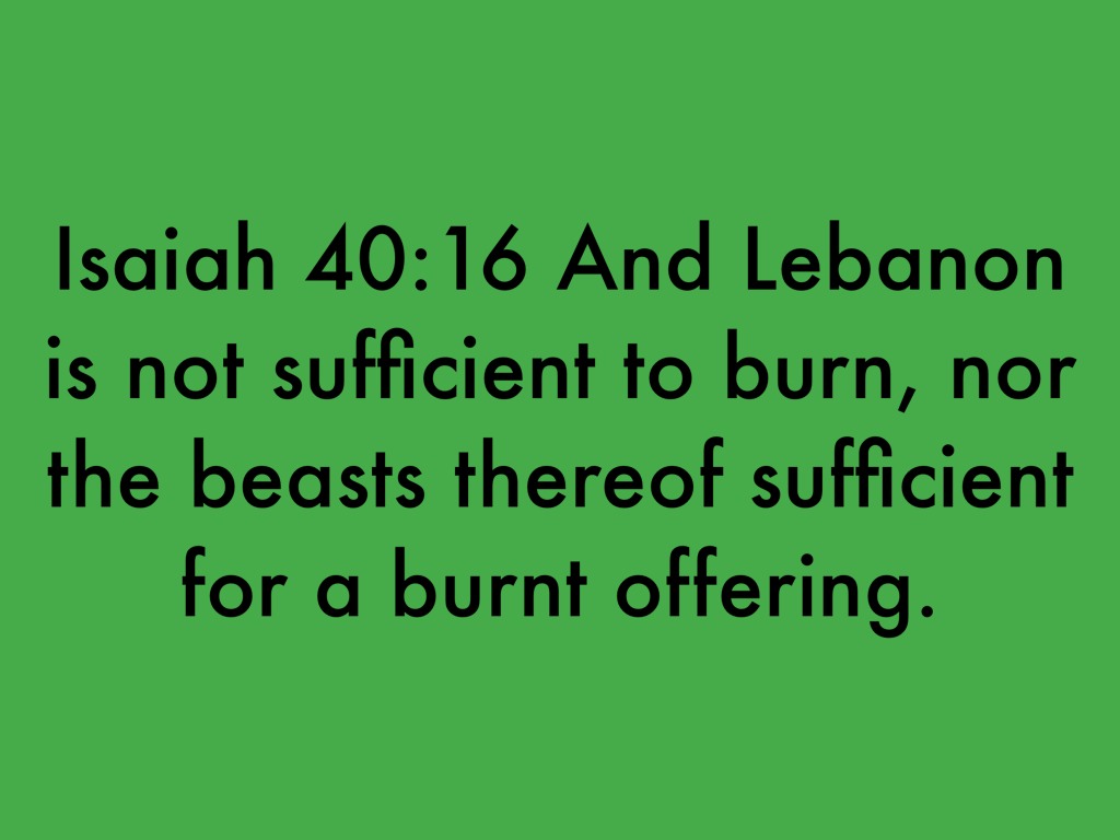 Isaiah 40:16 And Lebanon is not sufficient to burn, nor the beasts thereof sufficient for a burnt offering.