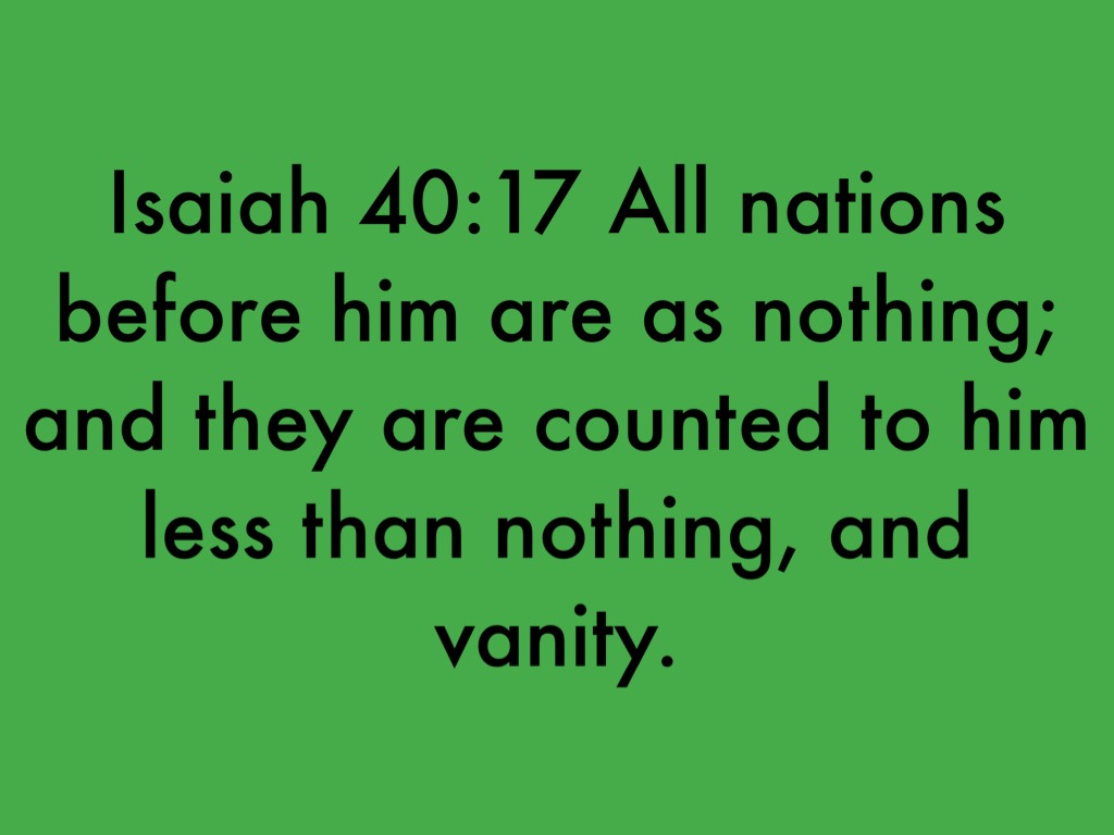 Isaiah 40:17 All nations before him are as nothing; and they are counted to him less than nothing, and vanity.