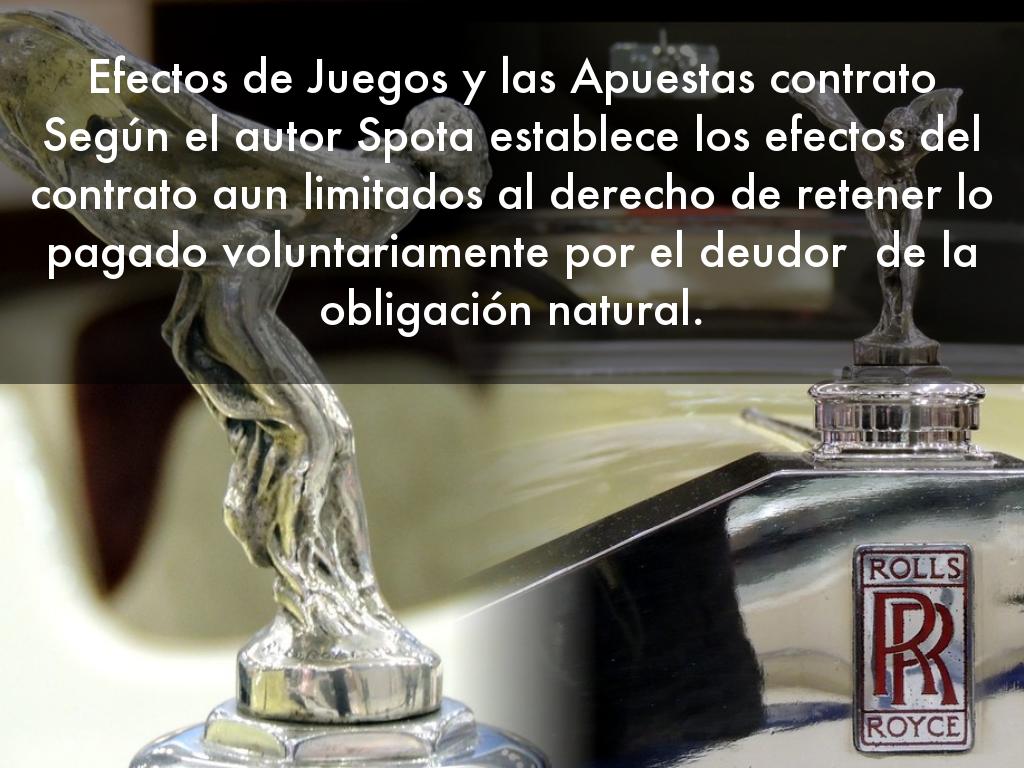 Efectos de Juegos y las Apuestas contrato Según el autor Spota establece los efectos del contrato aun limitados al derecho de retener lo pagado voluntariamente por el deudor de la obligación natural.