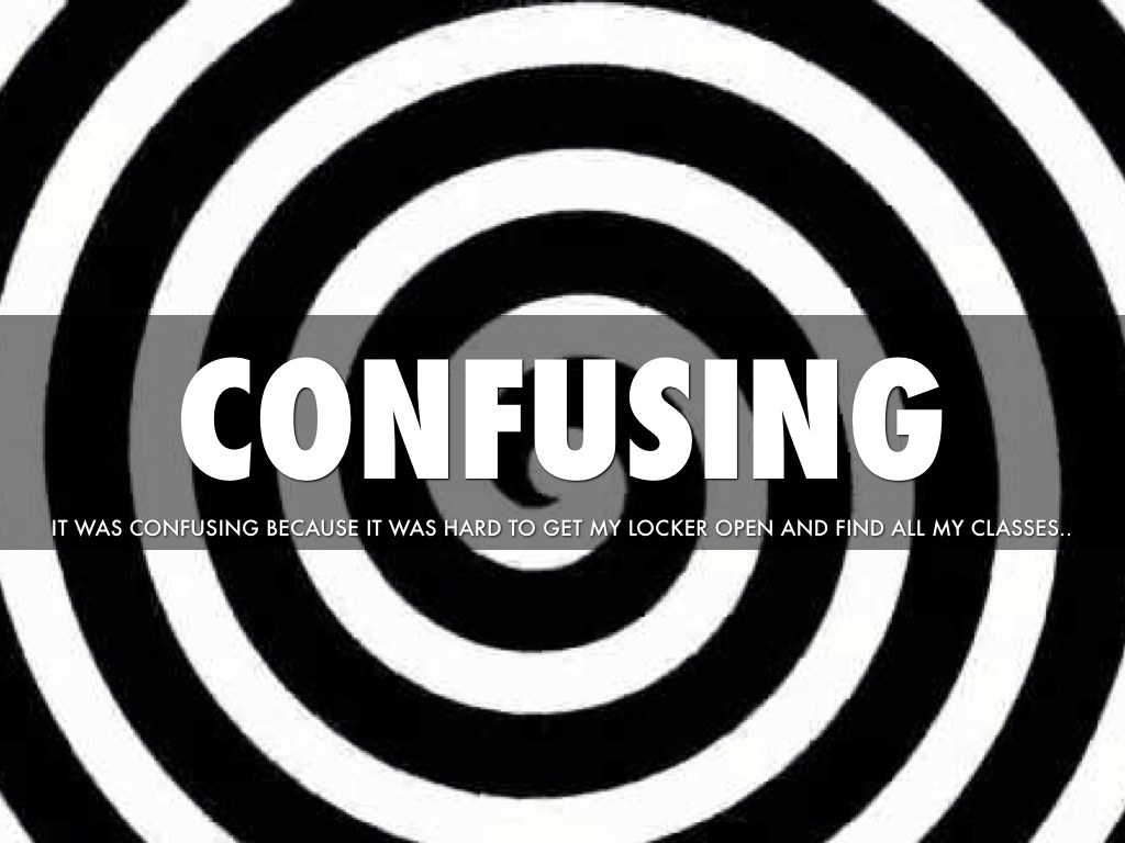 IT WAS CONFUSING BECAUSE IT WAS HARD TO GET MY LOCKER OPEN AND FIND ALL MY CLASSES..