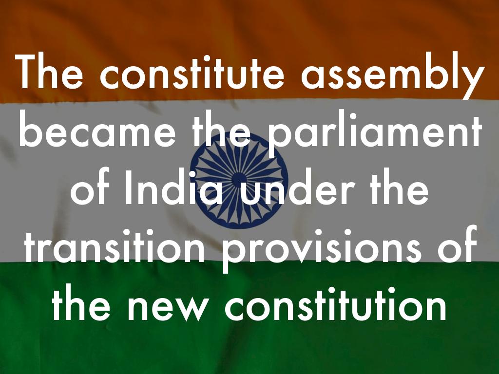 The constitute assembly became the parliament of India under the transition provisions of the new constitution