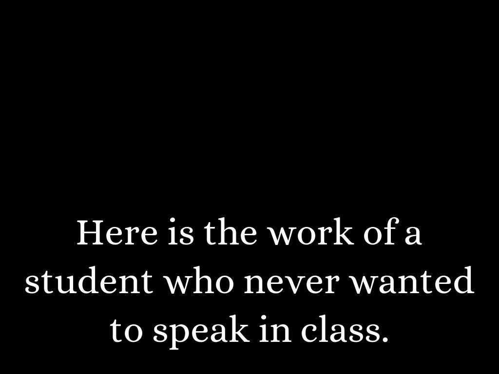 Here is the work of a student who never wanted to speak in class.