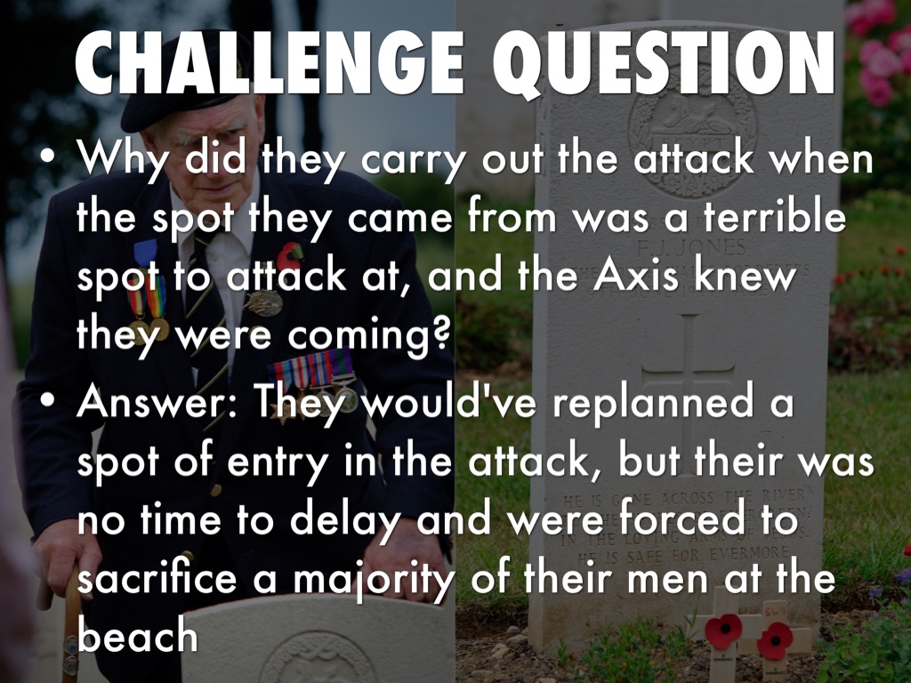 Answer: They would've replanned a spot of entry in the attack, but their was no time to delay and were forced to sacrifice a majority of their men at the beach