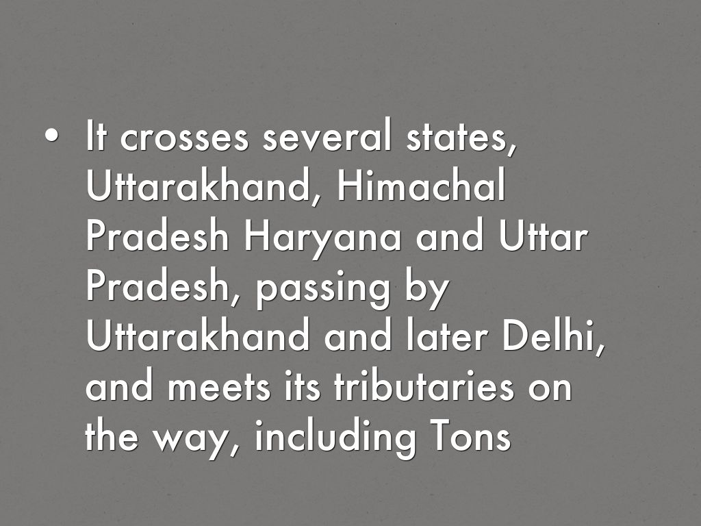 It crosses several states, Uttarakhand, Himachal Pradesh Haryana and Uttar Pradesh, passing by Uttarakhand and later Delhi, and meets its tributaries on the way, including Tons