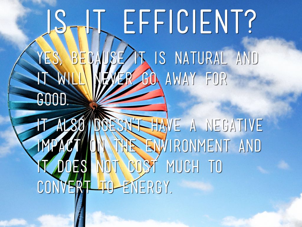 It also doesn't have a negative impact on the environment and it does not cost much to convert to energy.