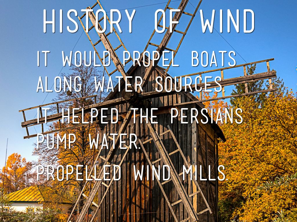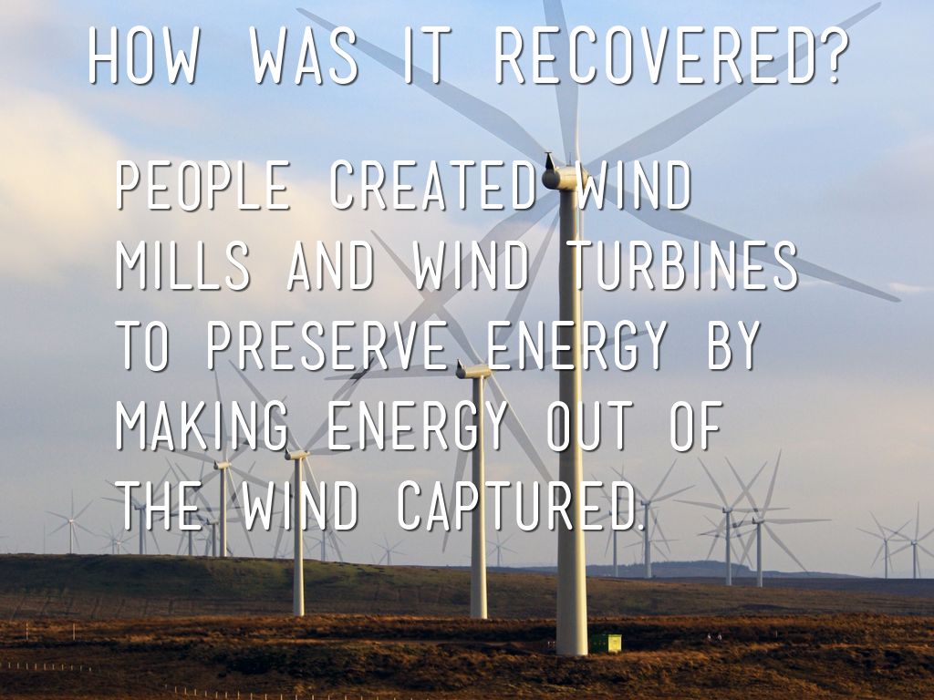 People created wind mills and wind turbines to preserve energy by making energy out of the wind captured.