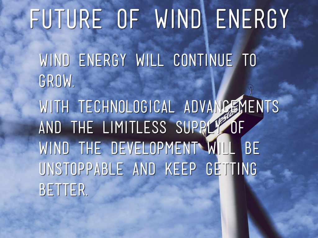 With technological advancements and the limitless supply of wind the development will be unstoppable and keep getting better.