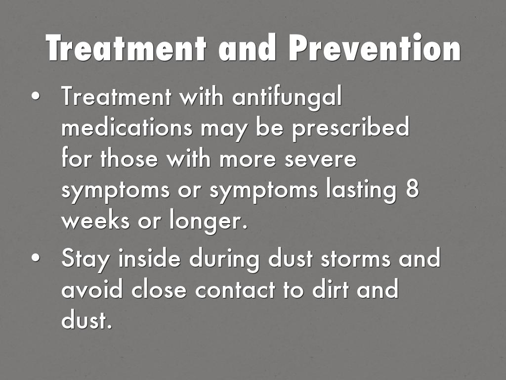 Treatment with antifungal medications may be prescribed for those with more severe symptoms or symptoms lasting 8 weeks or longer.