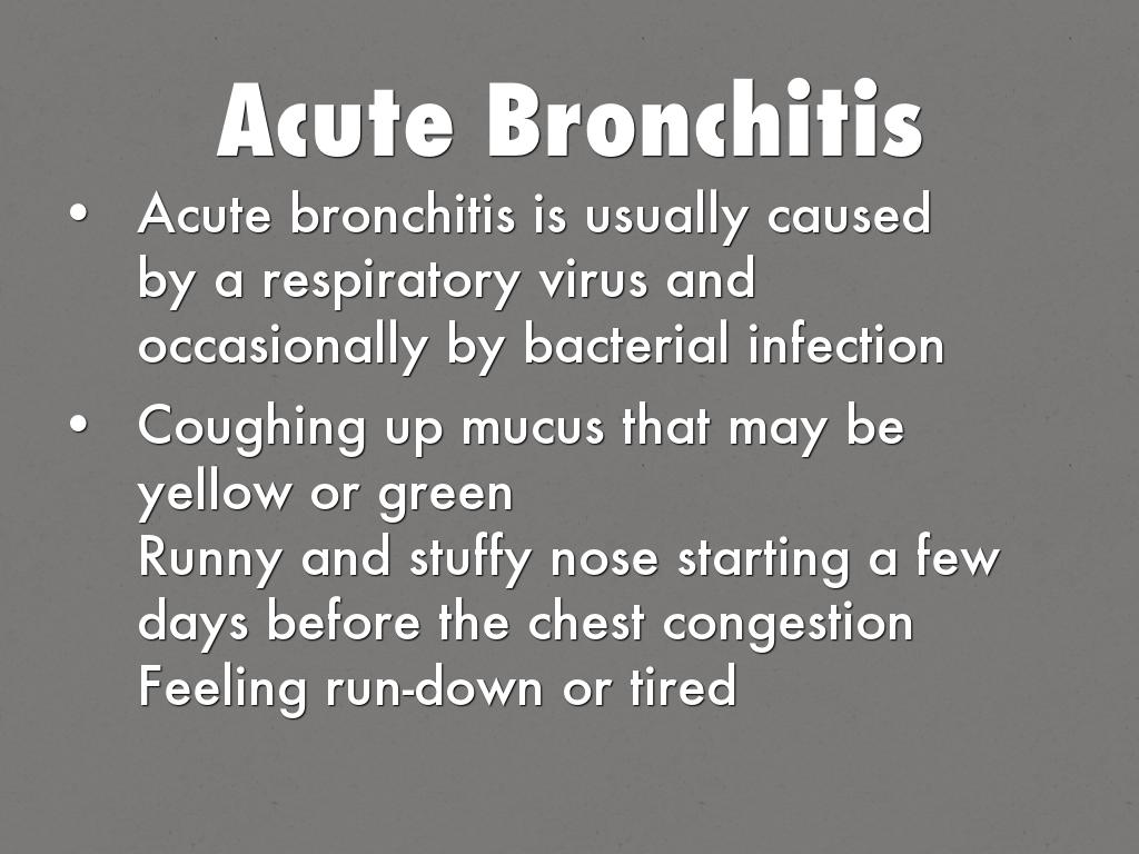 Acute bronchitis is usually caused by a respiratory virus and occasionally by bacterial infection