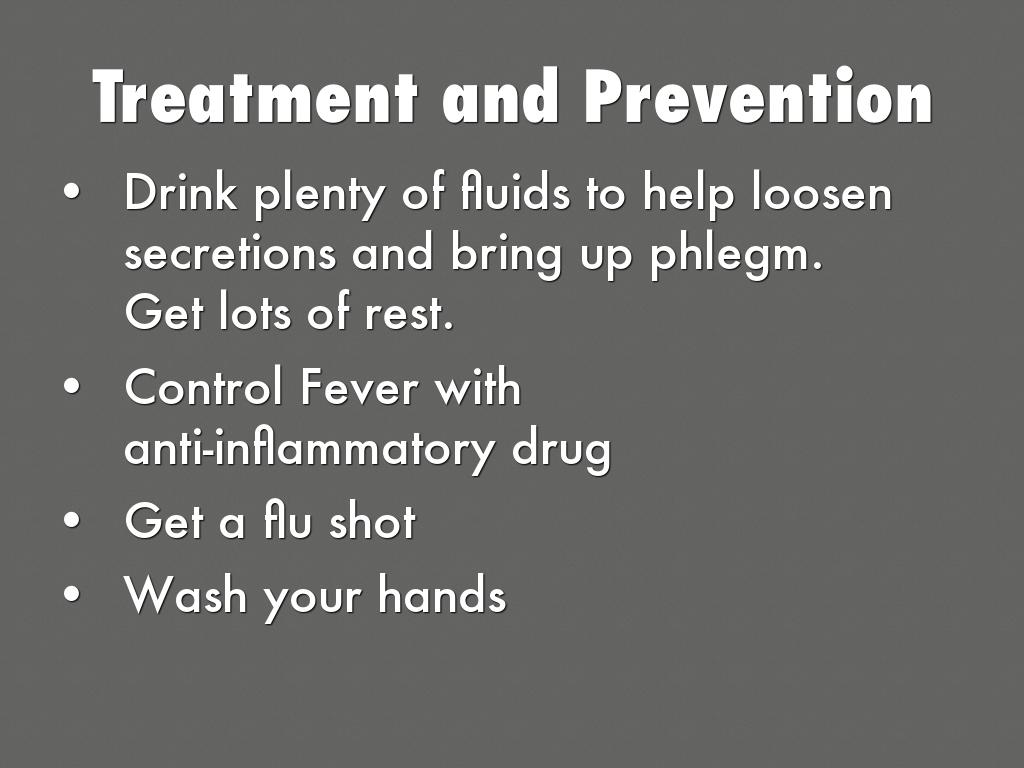 Drink plenty of fluids to help loosen secretions and bring up phlegm. Get lots of rest.