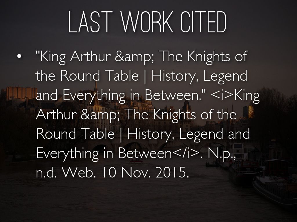 "King Arthur & The Knights of the Round Table | History, Legend and Everything in Between." King Arthur & The Knights of the Round Table | History, Legend and Everything in Between. N.p., n.d. Web. 10 Nov. 2015.