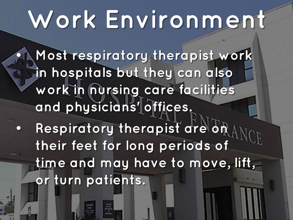 Respiratory therapists care for a variety of patients with respiratory problems. They work with patients that have asthma, undeveloped lungs, and other respiratory diseases.