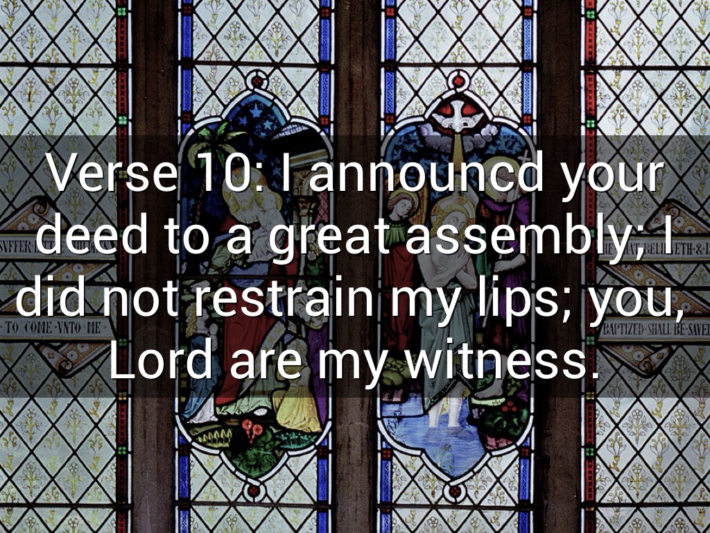 Verse 10: I announcd your deed to a great assembly; I did not restrain my lips; you, Lord are my witness.