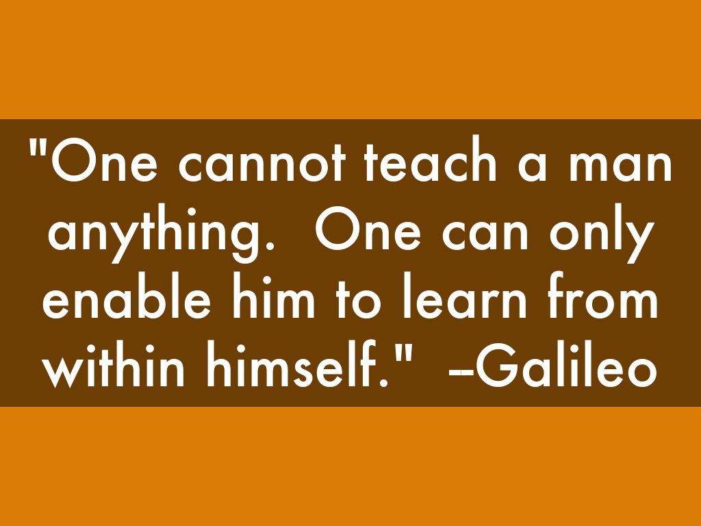 "One cannot teach a man anything. One can only enable him to learn from within himself." --Galileo