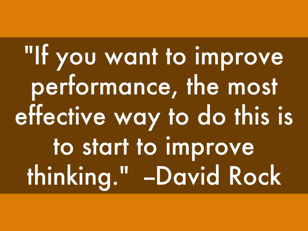 "If you want to improve performance, the most effective way to do this is to start to improve thinking." --David Rock