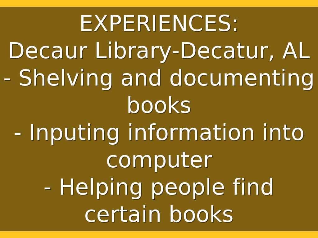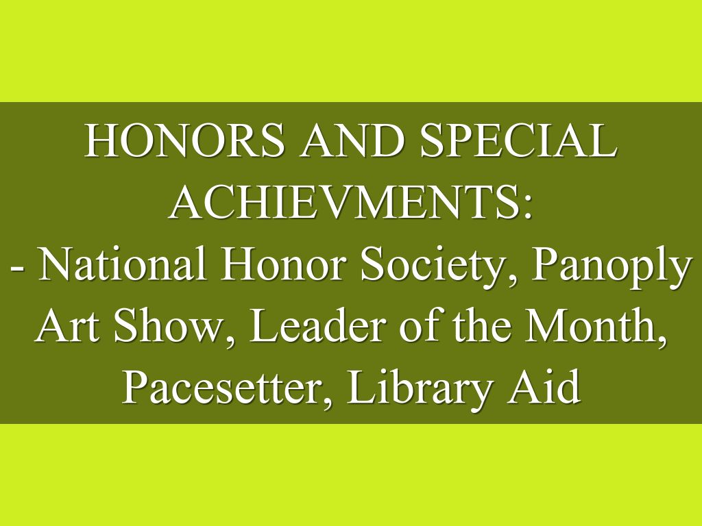 - National Honor Society, Panoply Art Show, Leader of the Month, Pacesetter, Library Aid