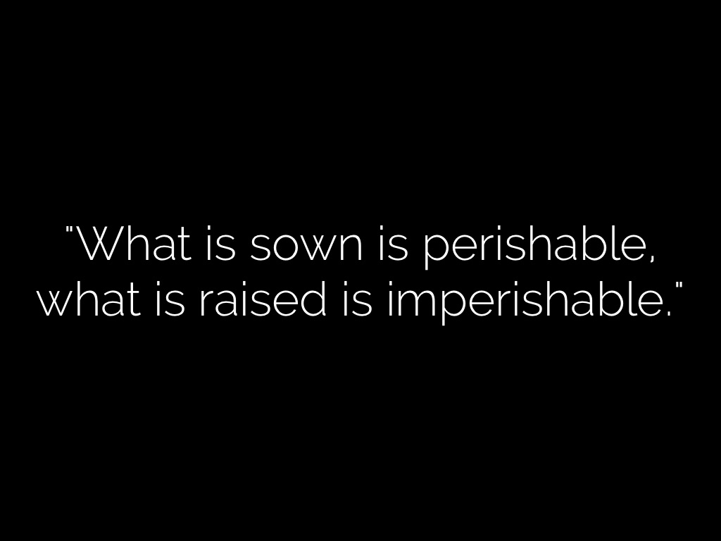 "What is sown is perishable, what is raised is imperishable."