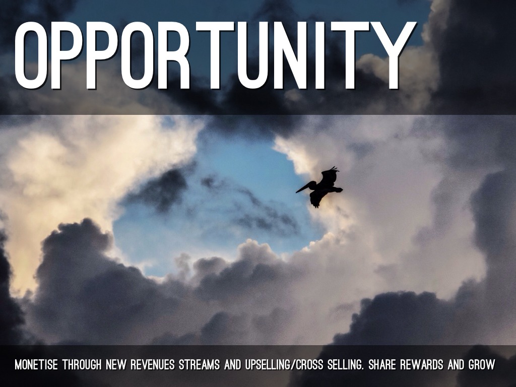 MONETISE THROUGH NEW REVENUES STREAMS AND UPSELLING/CROSS SELLING. SHARE REWARDS AND GROW