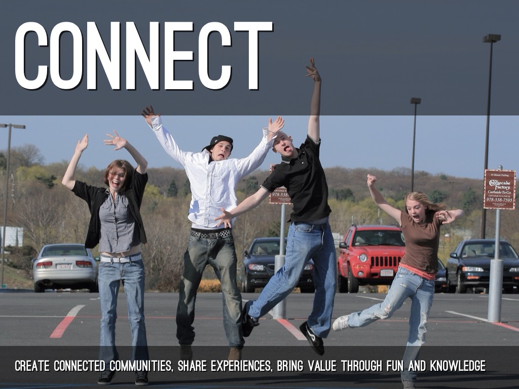 CREATE CONNECTED COMMUNITIES, SHARE EXPERIENCES, BRING VALUE THROUGH FUN AND KNOWLEDGE